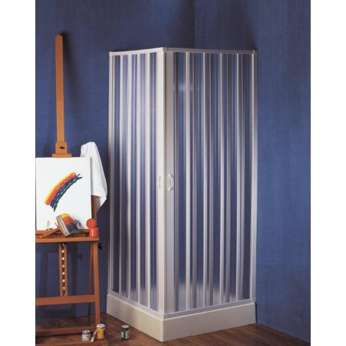 Box doccia in PVC a 2 lati con apertura a angolare a soffietto, perfetto per piatti doccia collocati ad angolo tra 2 pareti.