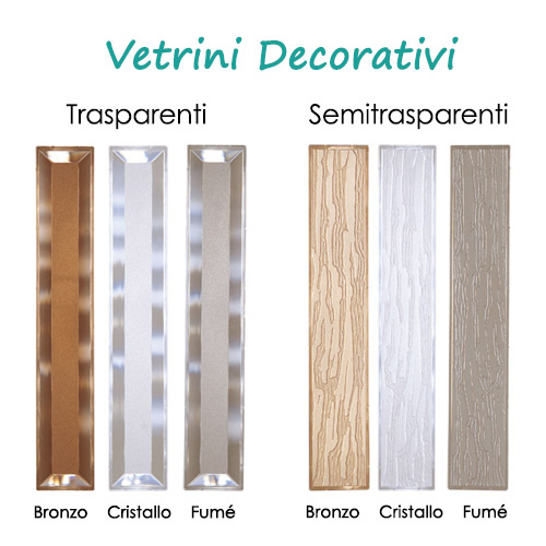 | Numero vetrini decorativi | 3 vetri per pannello | 4 vetri per pannello | 5 vetri per pannello |