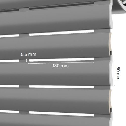 Avvolgibile Arialuce con foro largo. Aerazione maggiorata, luce filtrata, design particolare.