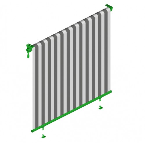 La tenda da sole a caduta in pvc per esterni, fissata a soffitto o a parete, è agganciabile a pavimento o a ringhiera tramite appositi fermi.
