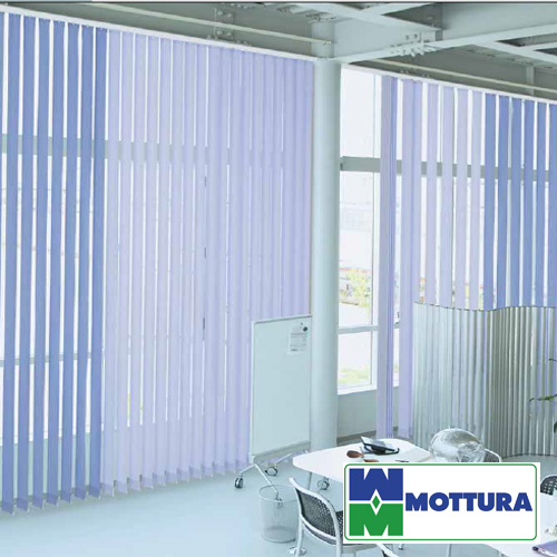 Sistema compatto per Tende a bande verticali con azionamento a doppio comando (apertura a corda ed orientamento a catenella).