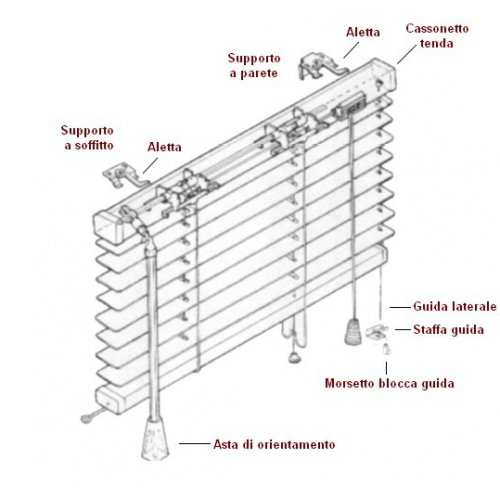 All’interno della confezione sono presenti anche dei supporti con cui è possibile installare le tende veneziane sia a parete che a soffitto.