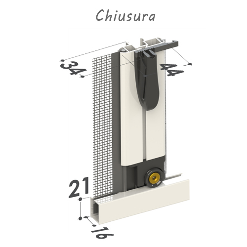 Le zanzariere per finestre antivento hanno un sistema a scorrimento laterale a rullo con chiusura di sicurezza e con sistema di riavvolgimento.