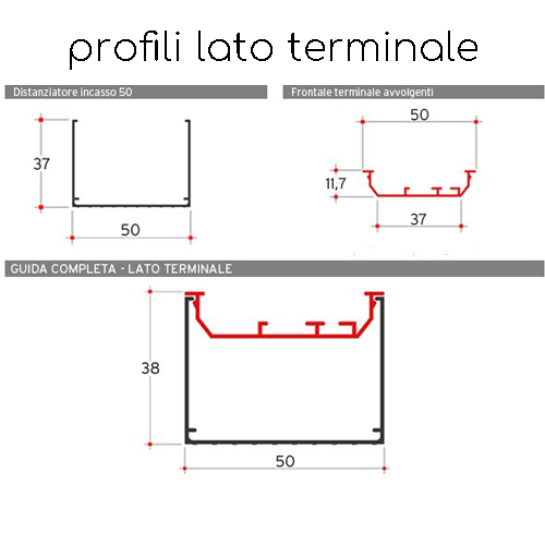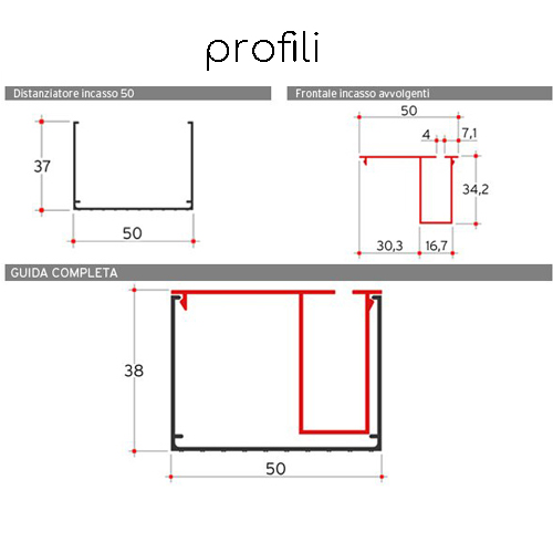 - Cassonetto squadrato da 45 mm (ingombro totale 50 mm);