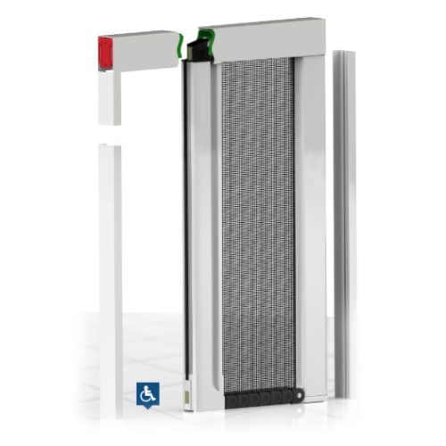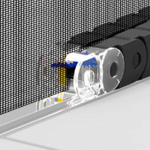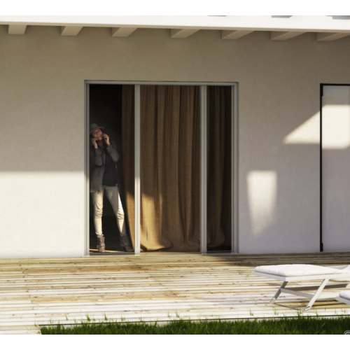 Questa zanzariera scorrevole è caratterizzata dall’assenza di binario di scorrimento a pavimento. Questo particolare brevetto rende la zanzariera invisibile quando riavvolta e perfetta per le zone di frequente passaggio, garantendo un design pulito e moderno.
